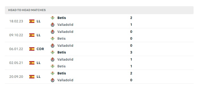 Phong độ gần đây Valladolid vs Real Betis
