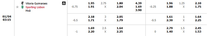 Bảng tỷ lệ kèo bóng đá Vitoria Guimaraes vs Sporting Lisbon