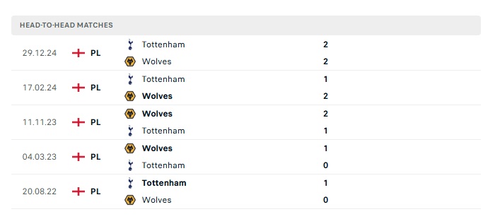 • Kèo tỷ số H2 Wolves vs Tottenham: 1-0